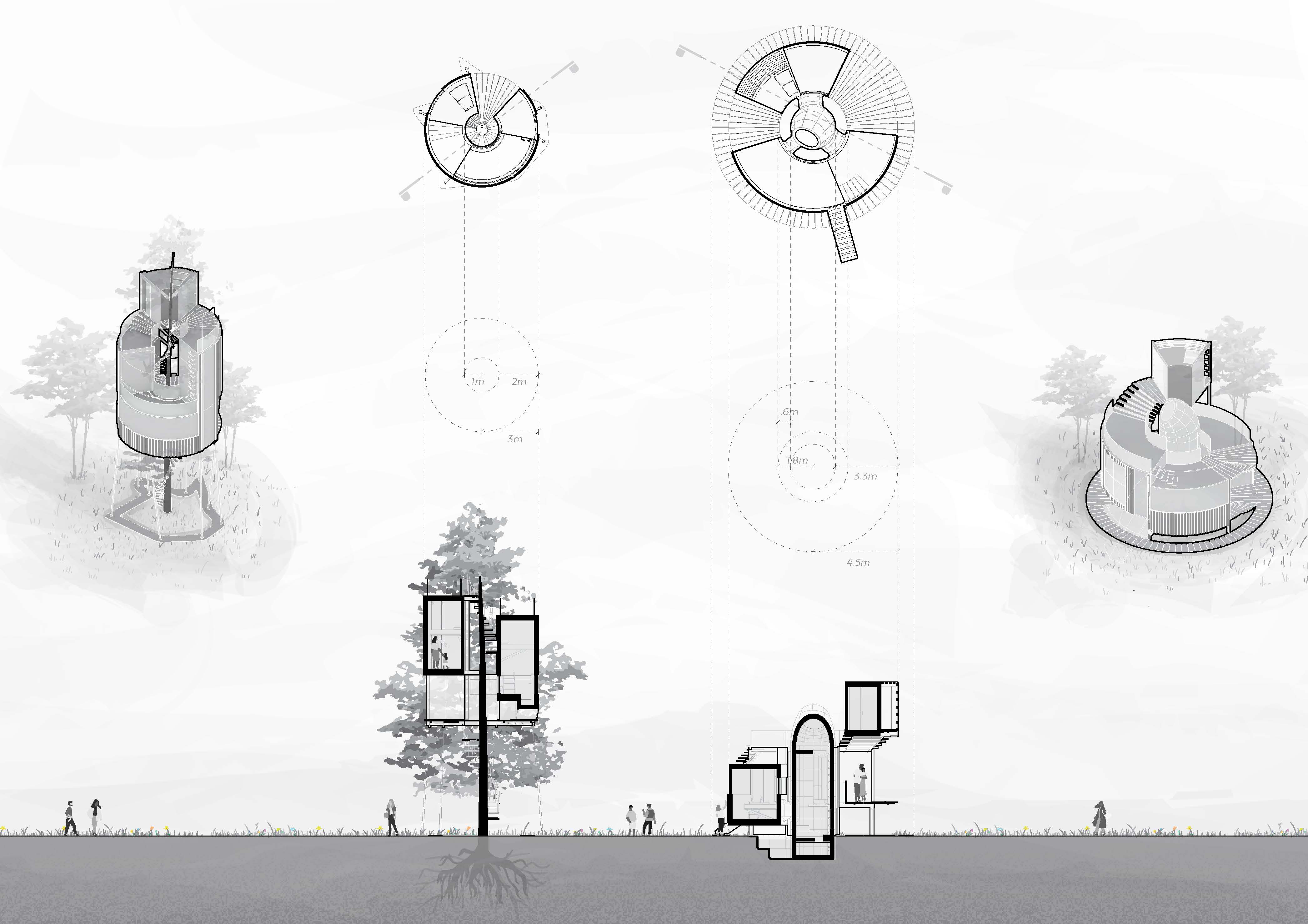 Children inhabit instinctually. The “Tree House” is a bastion of imagination. Pirates are spotted on the horizon, preparations have occurred to receive them, turn the mast to catch the air and engage head on. Joy, imagination, excitement should be an active ingredient in the conception of the built environment. This small twin home proposal serves as grounds for an experiment to make a real architectural proposal, fun.